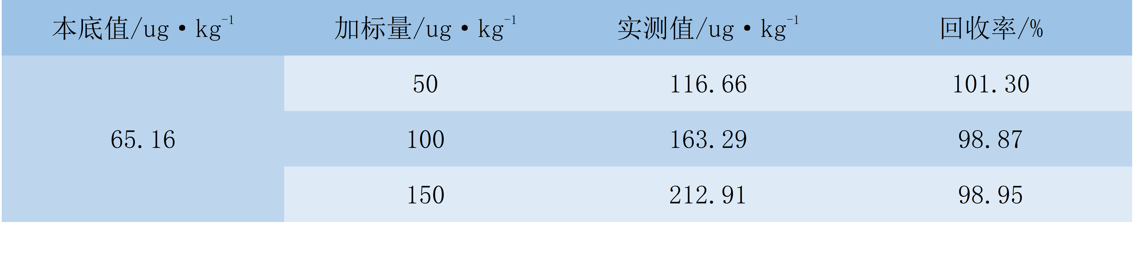 在銅精礦樣品中加入不同量的汞標(biāo)準(zhǔn)溶液,并進(jìn)行加標(biāo)回收試驗(yàn),回收試驗(yàn)結(jié)果見(jiàn)下表。由表4可知,樣品加標(biāo)回收率為98.1%~103%。
